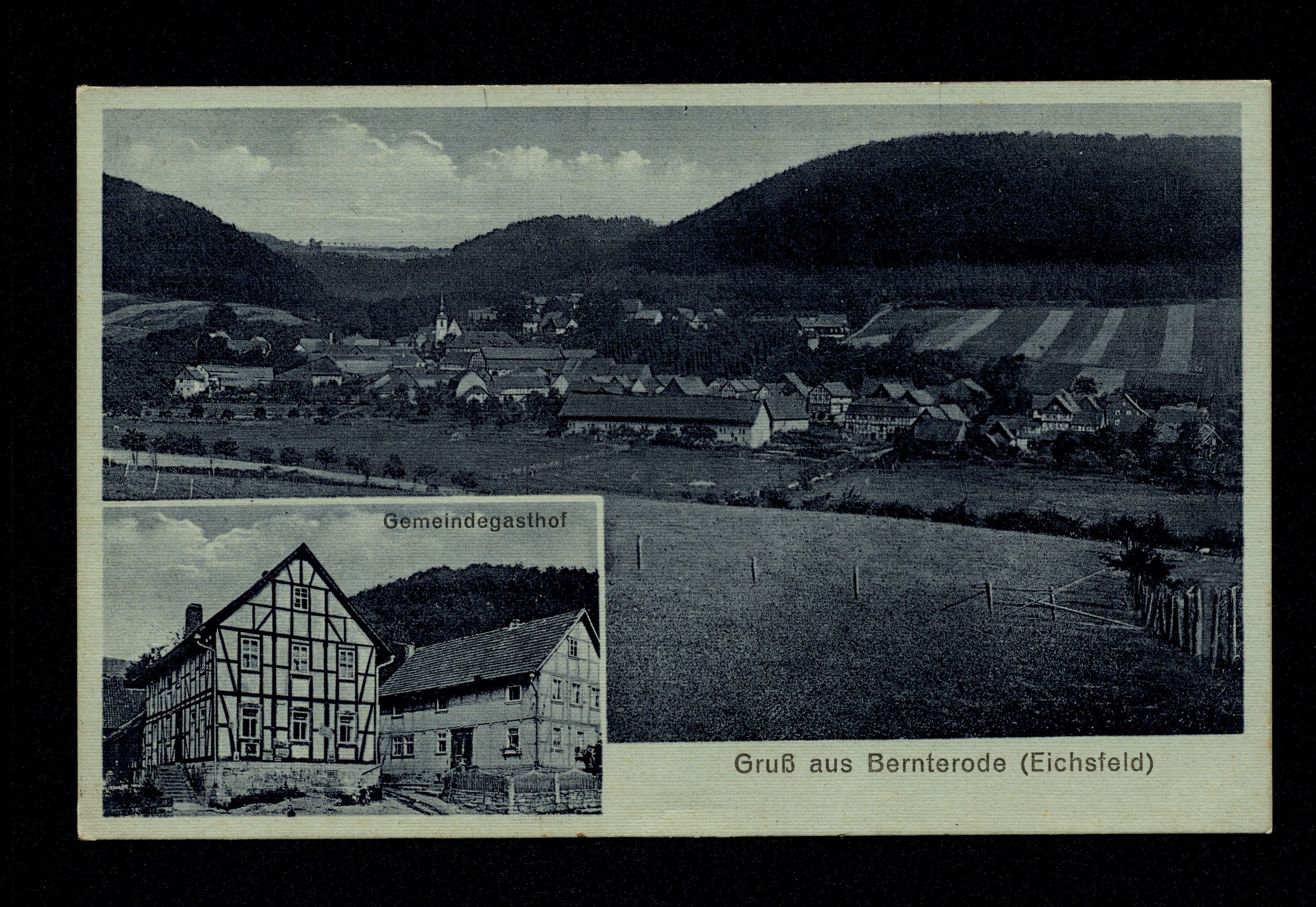 Ort Bernterode (bei Heilbad Heiligenstadt) Motive Panorama Gemeindegasthof Format klein Verlag Kurt Görtz & Johannes Döring, Ichstedt Kyffh. Bestell- oder Individualnummer 6883 Tags Gasthaus