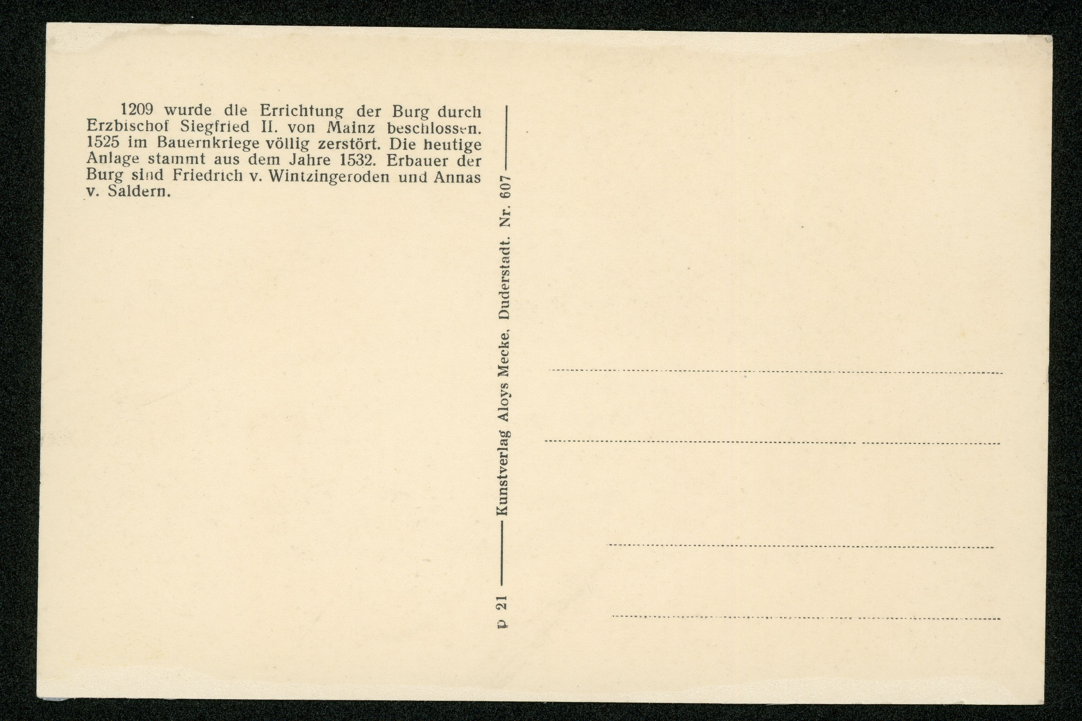 Ort Beuren Beschreibung Variante "grün" Sammlung: H.M.D. Motive Panorama Format klein Verlag Aloys Mecke, Duderstadt Bestell- oder Individualnummer Nr. 607 p 21