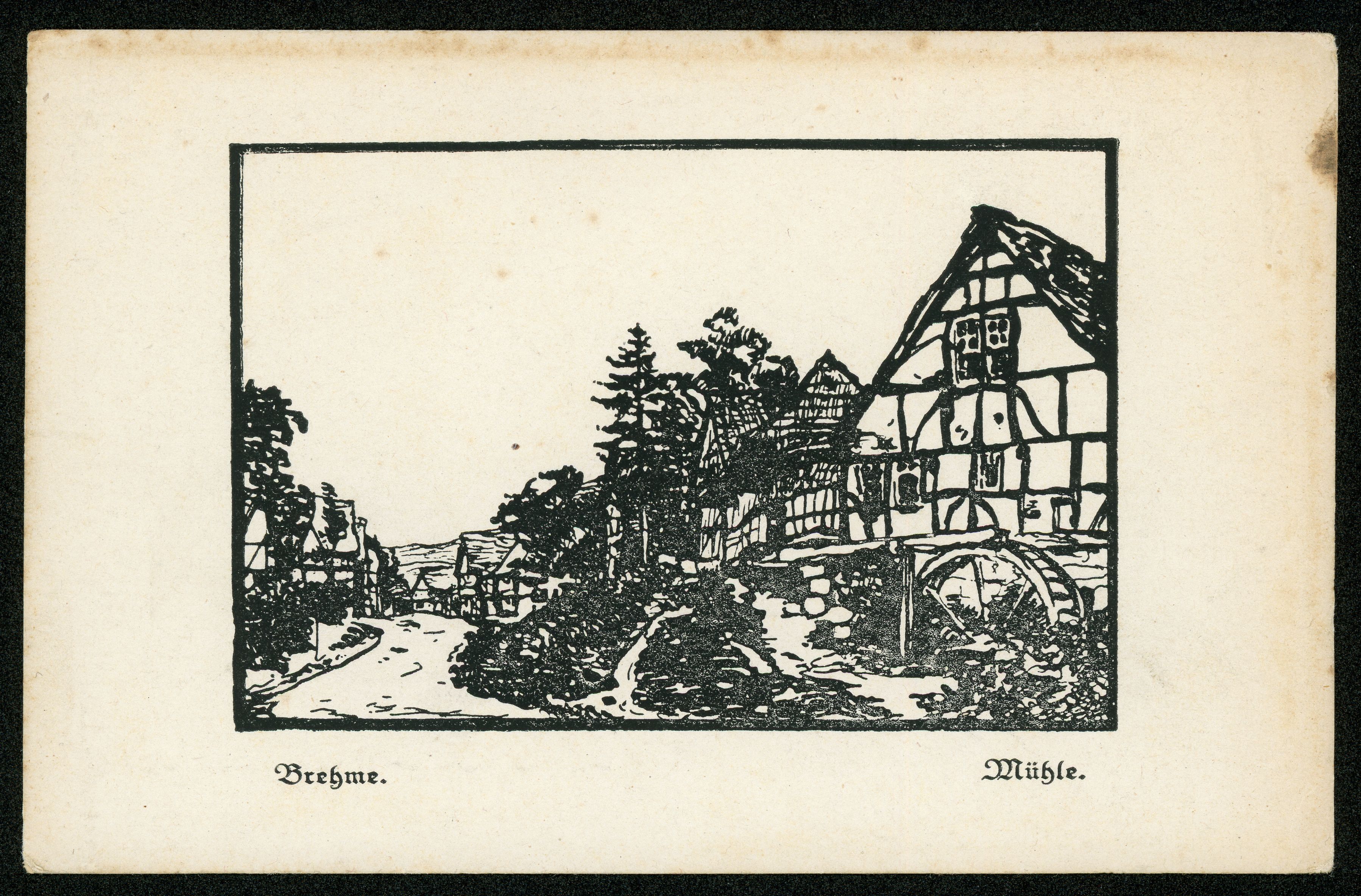 Ort Brehme Beschreibung Variante "Rückseite" Sammlung: H.M.D. Motive Mühle Format klein Verlag Aloys Mecke, Duderstadt Bestell- oder Individualnummer - Tags Wassermühle Dorfstraße Ölmühle