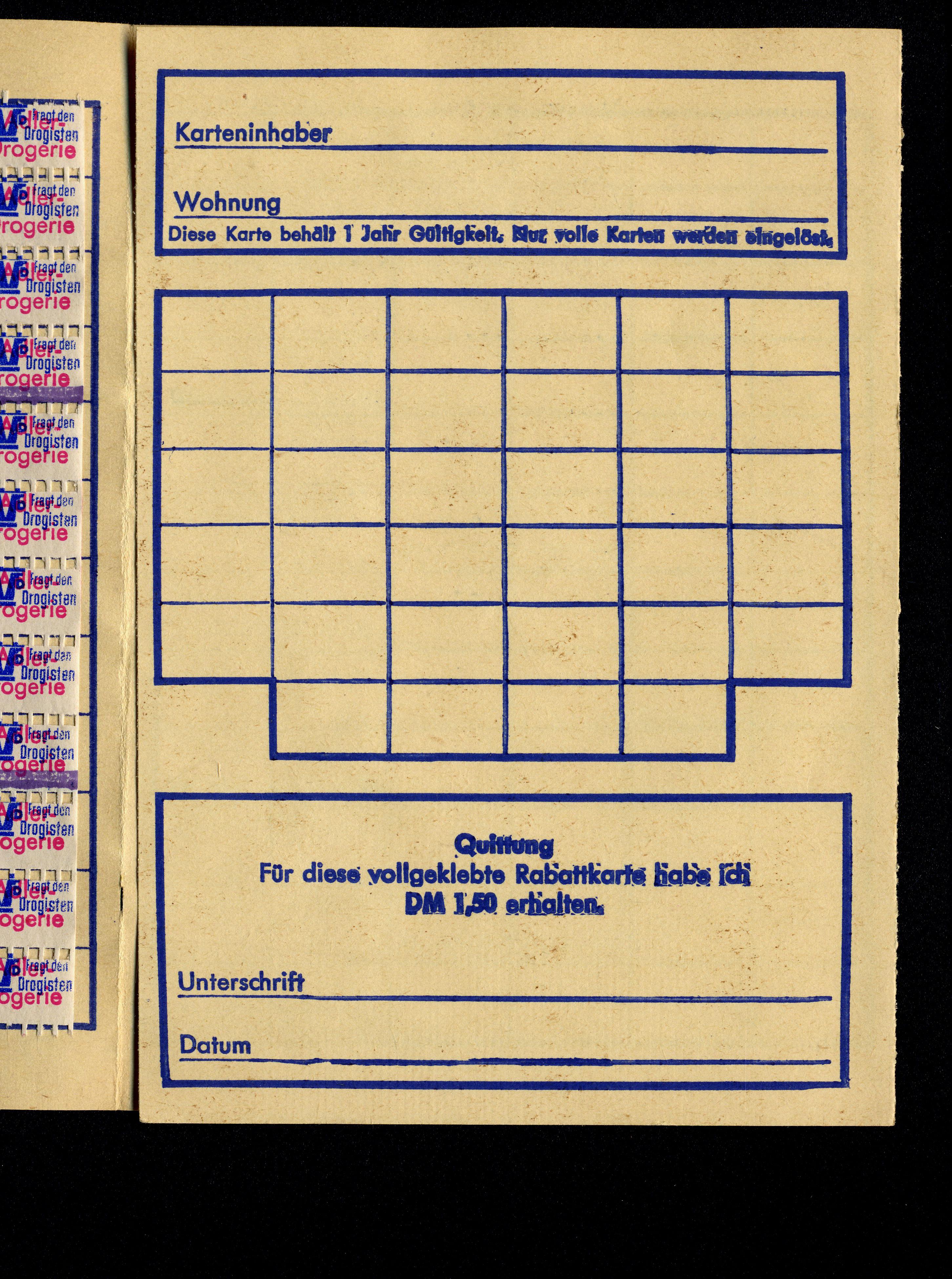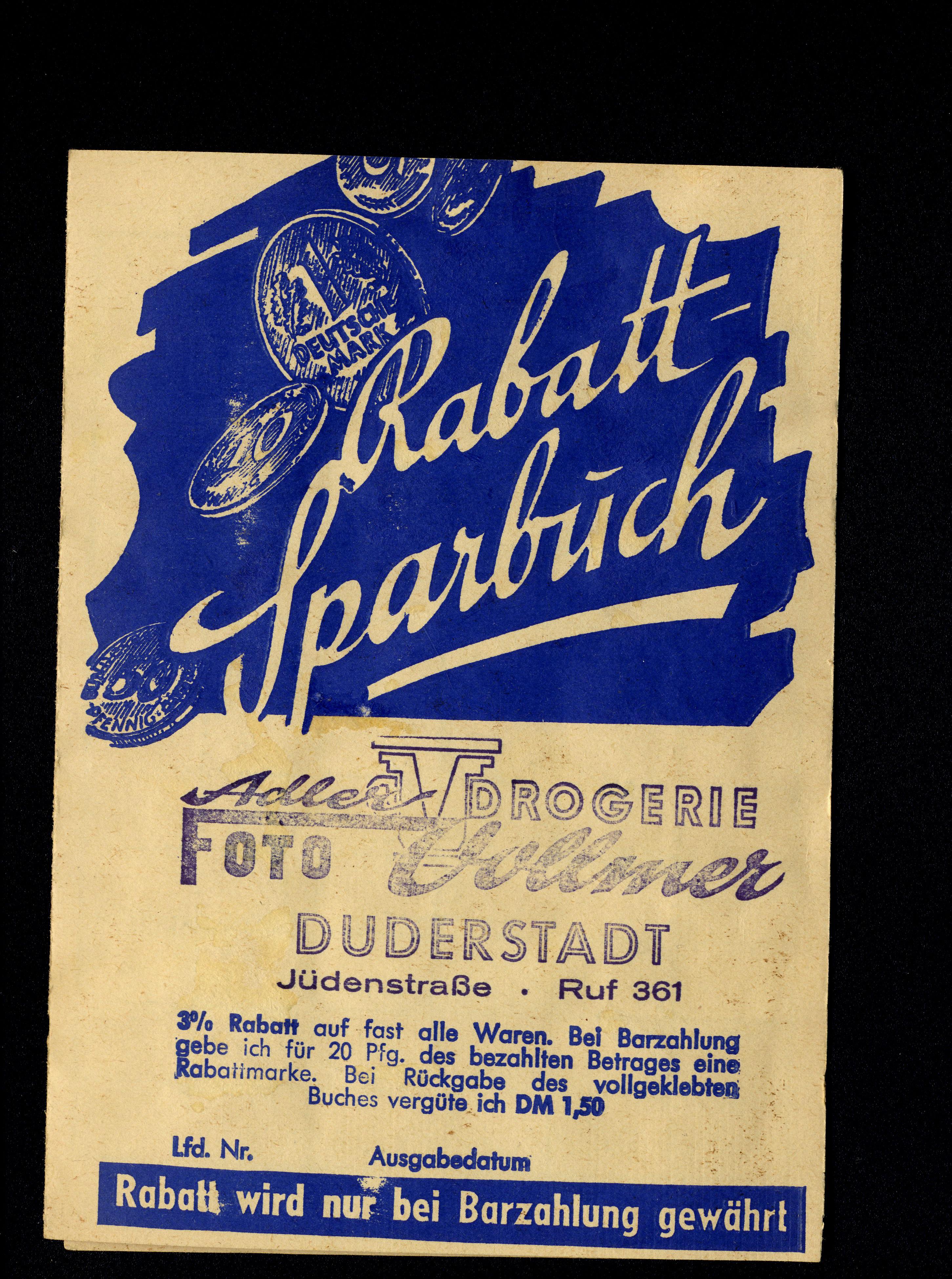 Ort Duderstadt - Belege Beschreibung Rabatt-Sparbuch im Postkartenformat, 4seitig Motive Rabatt-Sparbuch Adler Drogerie Foto Vollmer Format Sonderformat Verlag - Bestell- oder Individualnummer - Tags Rabattheft