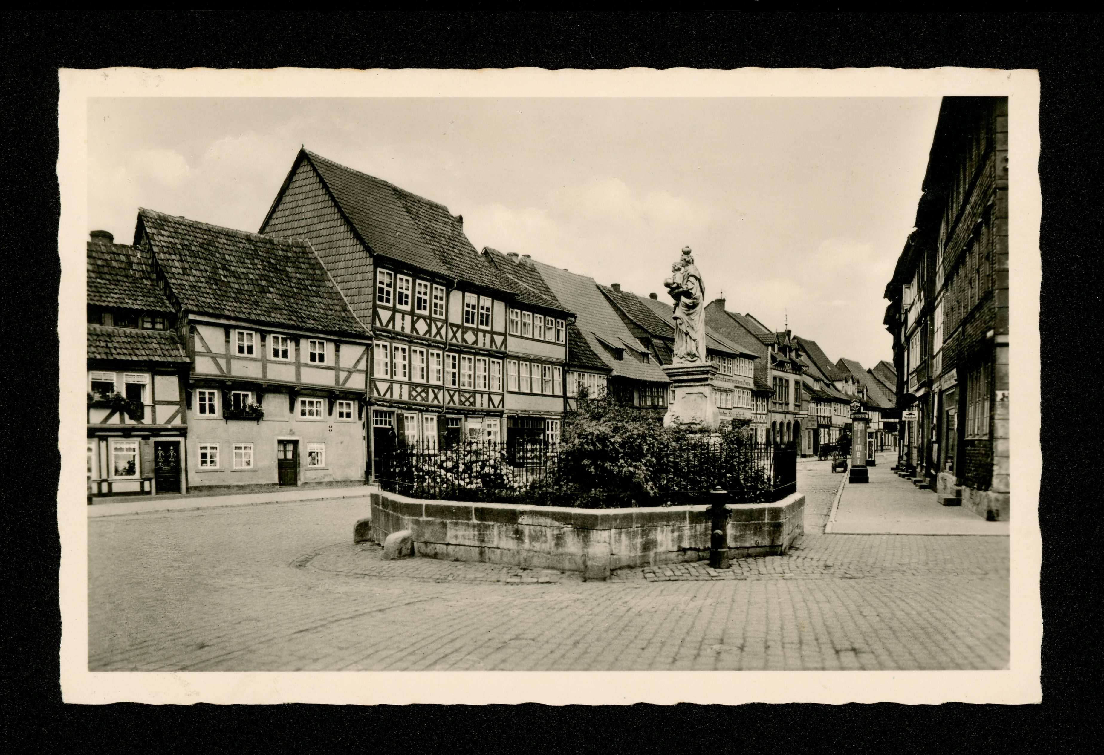 Ort Duderstadt Motive Mariensäule mit Westertorstraße Format klein Verlag Hans Kape, Duderstadt / Eichsfeld Bestell- oder Individualnummer Dud 18 Tags Gasthof zum weissen Ross Wilhelm Stockfisch Madonna im Lindenzaun