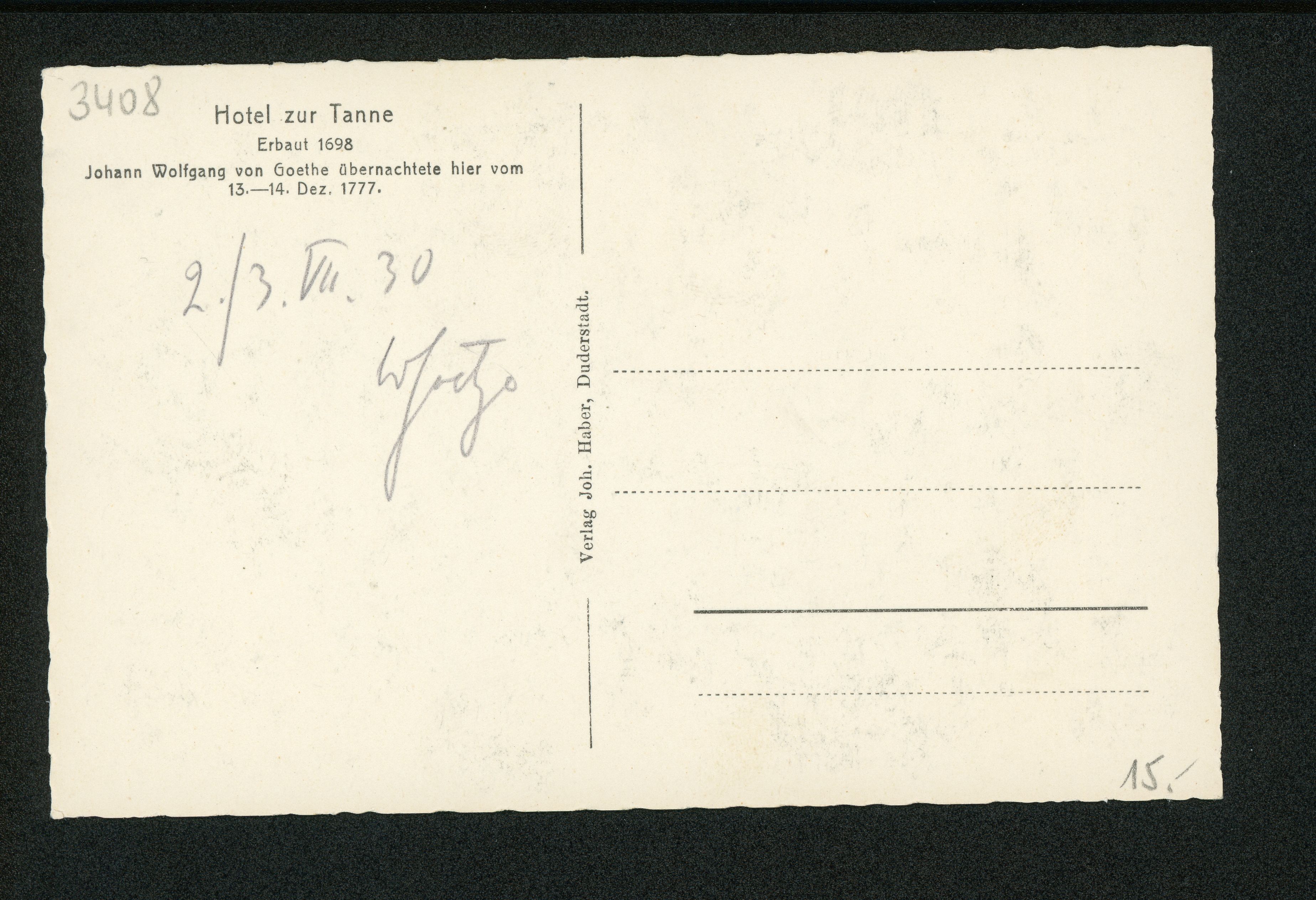 Ort Duderstadt Motive Hotel zur Tanne Format klein Jahr 1930 Verlag Johannes Haber, Duderstadt Bestell- oder Individualnummer - Tags Gasthaus
