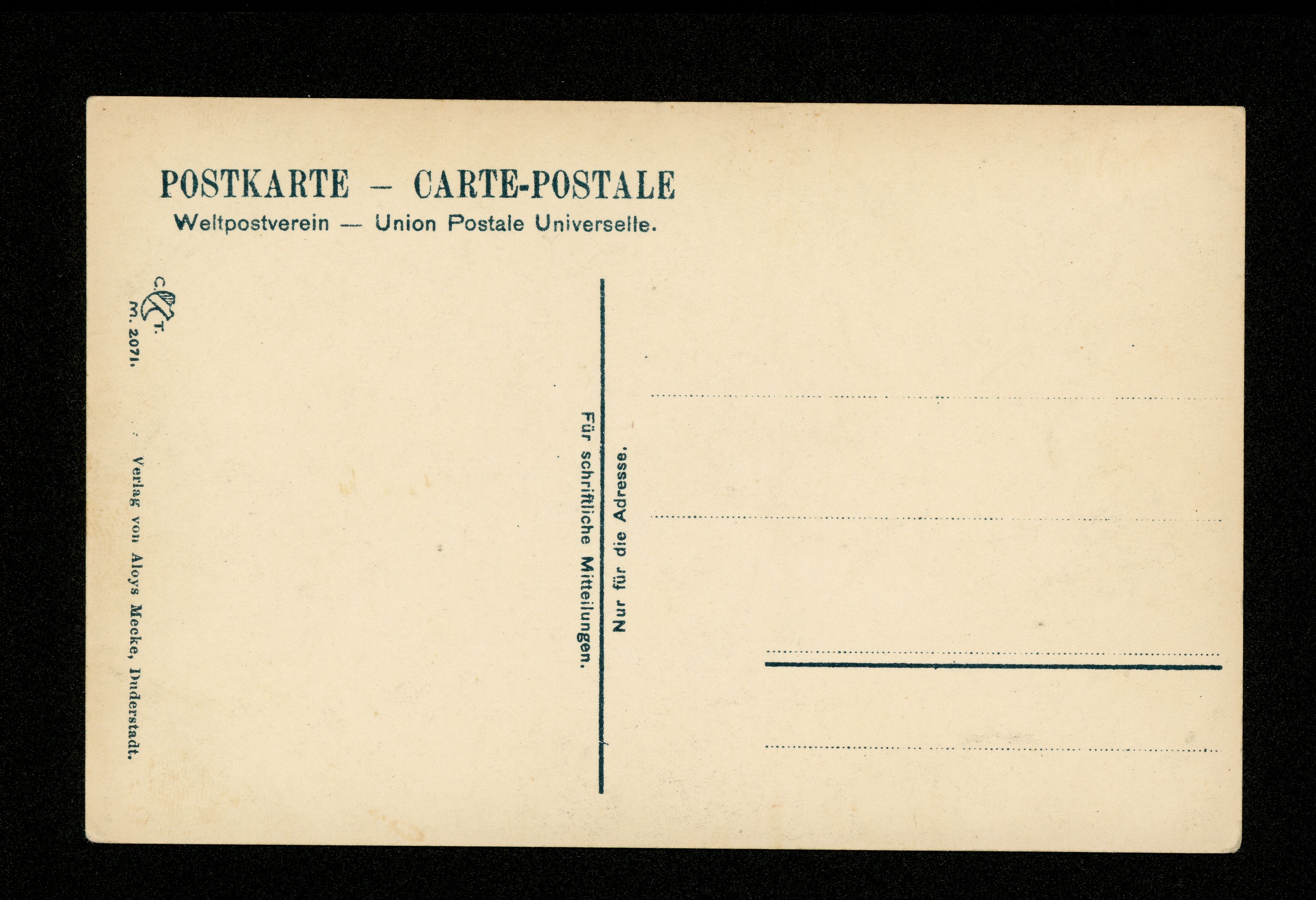 Ort Duderstadt Beschreibung Variante "grau" Motive Blick durch den Westerturm auf die Spiegelbrücke Format klein Verlag Aloys Mecke, Duderstadt Bestell- oder Individualnummer 2071 Tags St. Servatius-Kirche