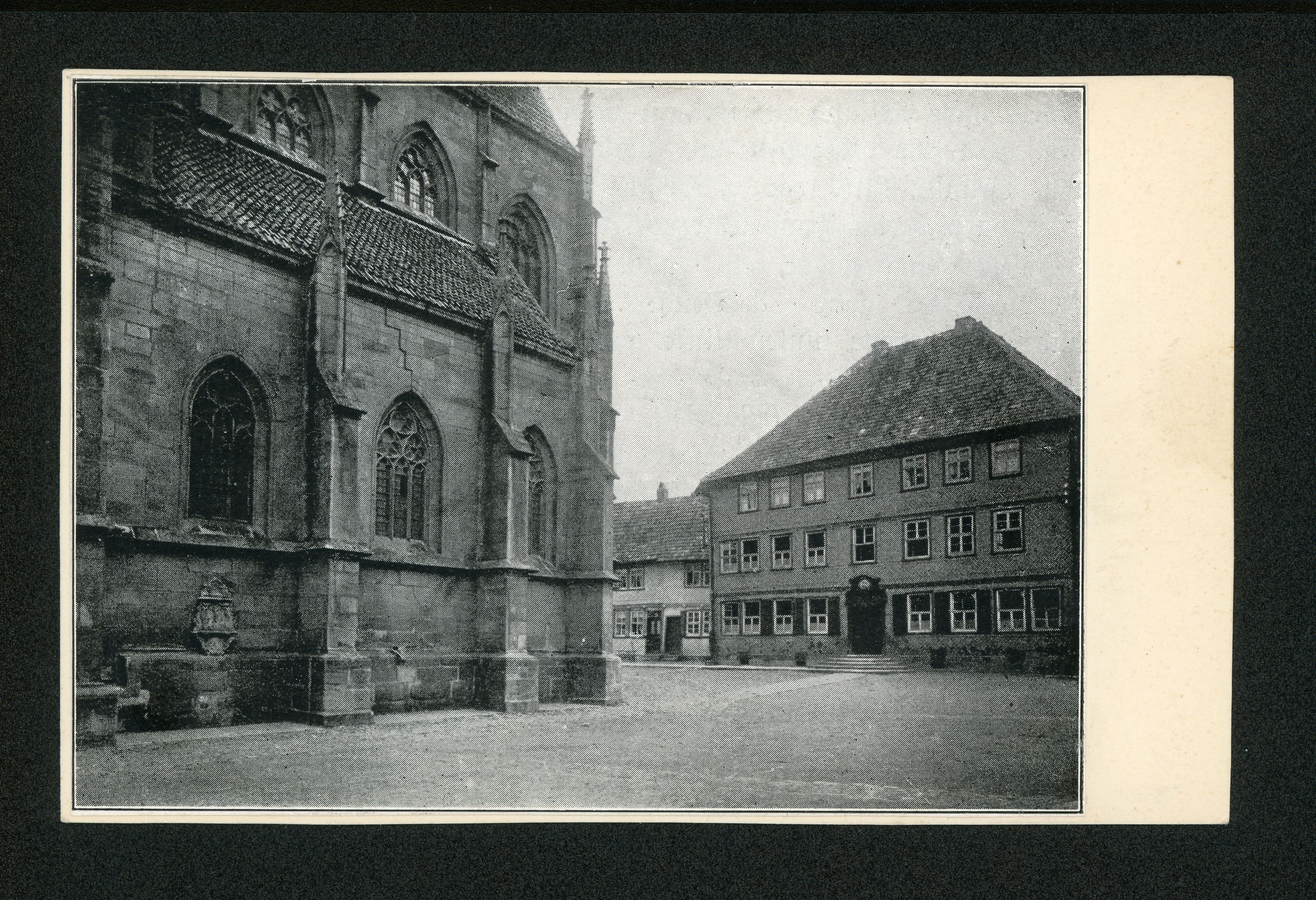 Ort Duderstadt Beschreibung Bild aufgeklebt Motive Süd-Ost-Seite von St. Cyriakus und Volksschule Format klein Verlag - Bestell- oder Individualnummer -