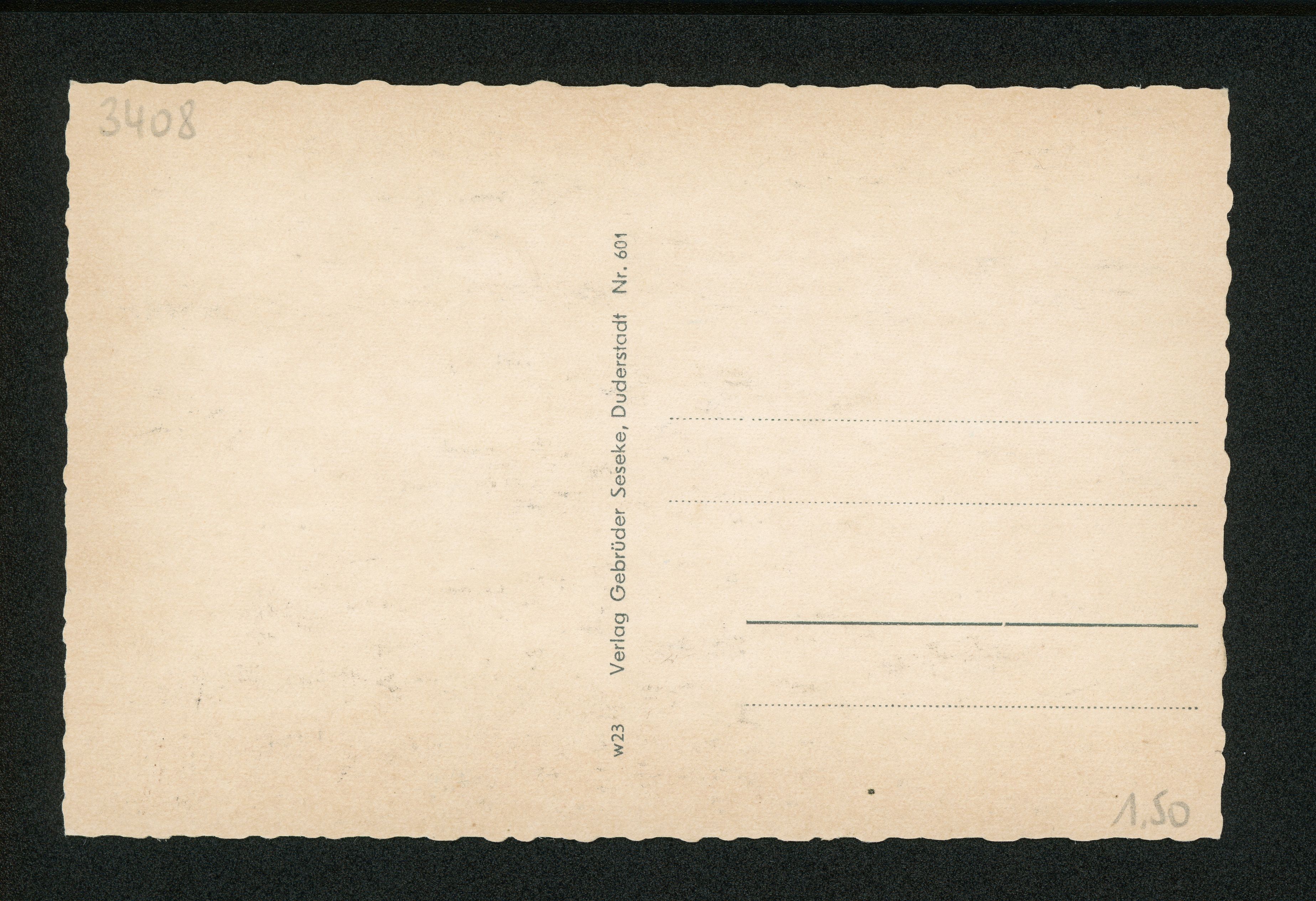 Ort Duderstadt Motive Andreischken mit Glockenspiel Format klein Verlag Gebrüder Seseke, Duderstadt Bestell- oder Individualnummer Nr. 601 w23 Tags Anreischke
