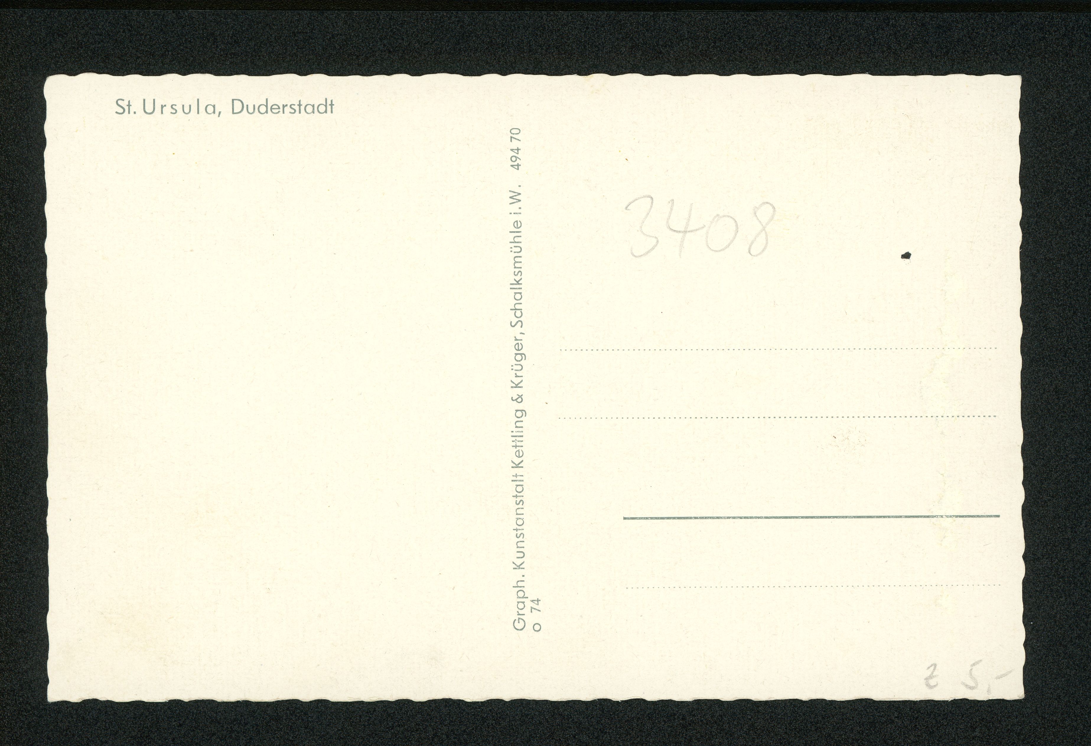 Ort Duderstadt Motive St. Ursula Format klein Verlag Kettling & Krüger, Schalksmühle i. Westf. Bestell- oder Individualnummer 494 70 o 74 Tags Klosterkirche Liebfrauenkirche