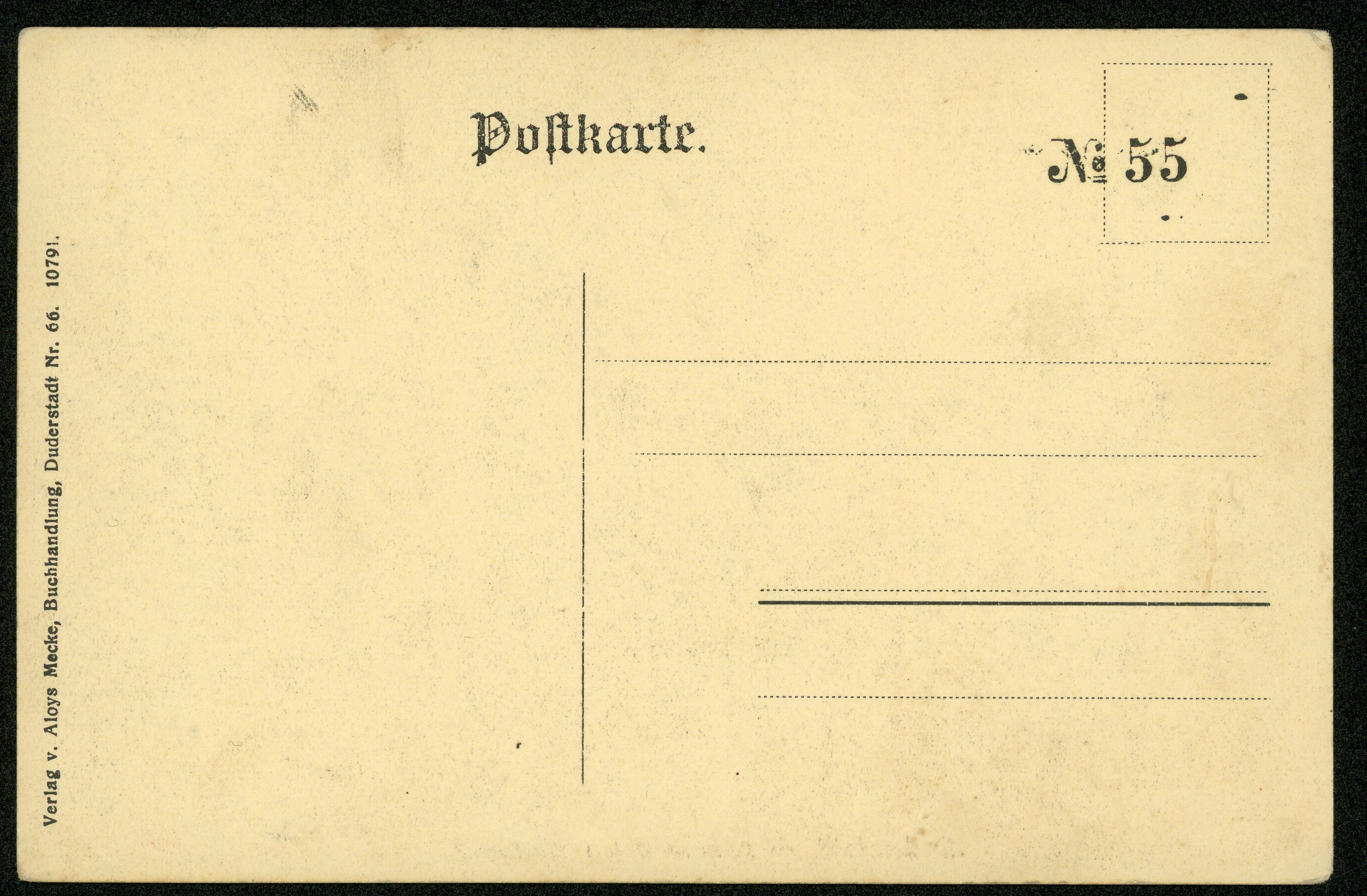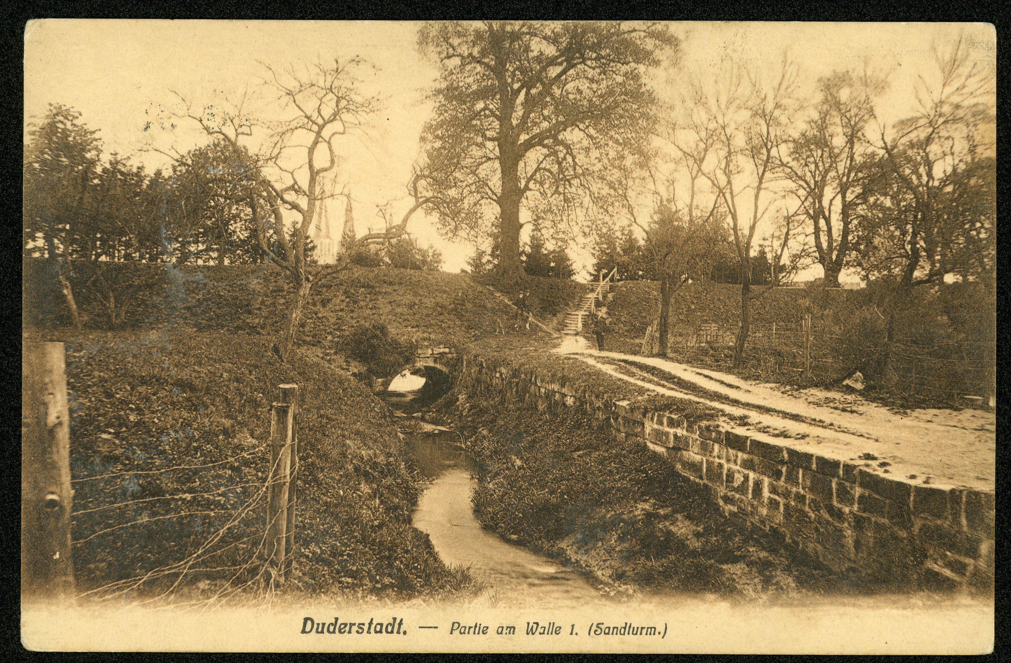 Ort Duderstadt Beschreibung Variante "Farbgebung" Motive Partie am Walle 1. ''Sandturm'' Format klein Verlag Aloys Mecke, Duderstadt Bestell- oder Individualnummer Nr. 66 10791