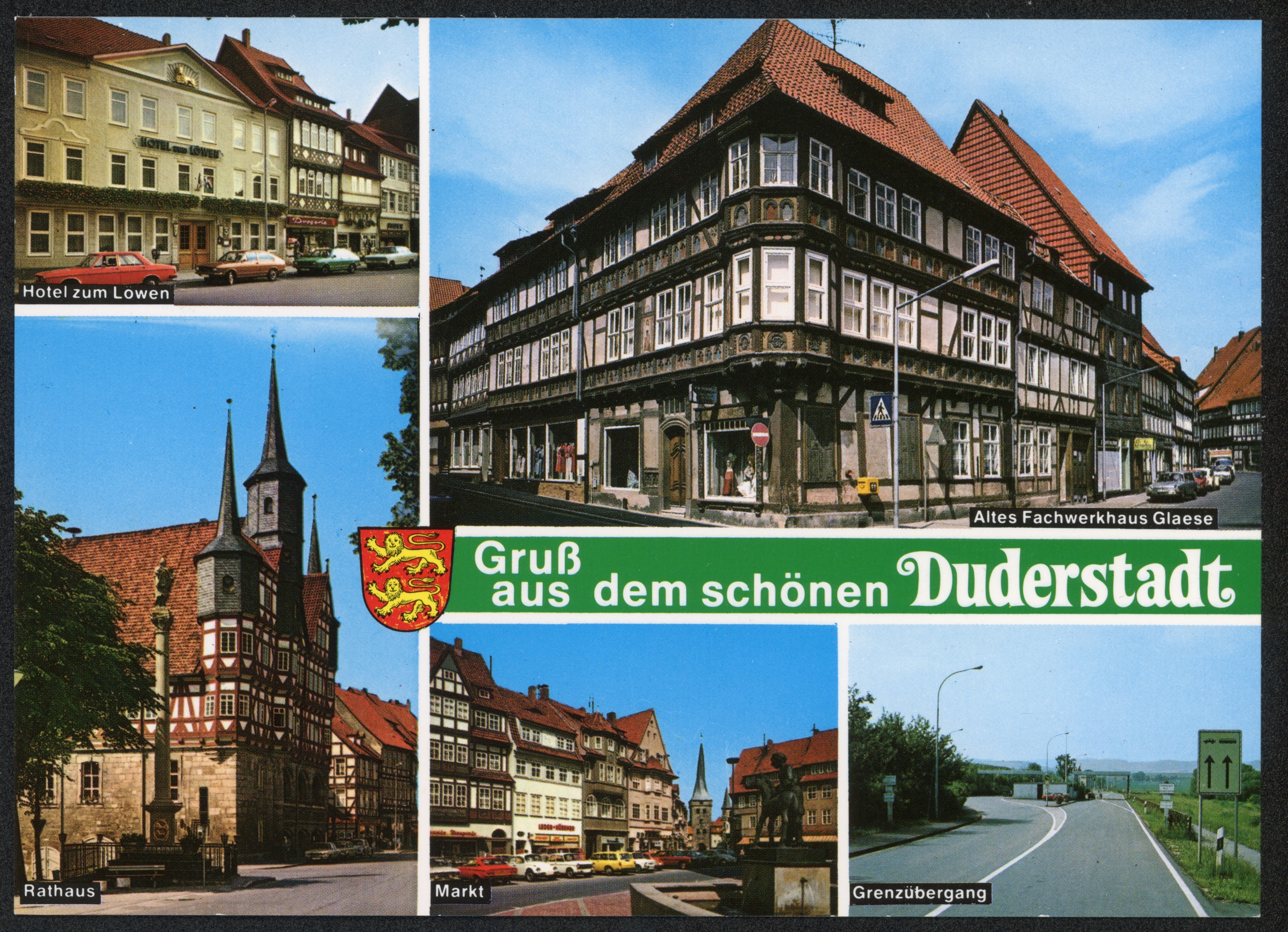 Ort Duderstadt Motive Hotel zum Löwen Rathaus Markt Grenzübergang Altes Fachwerkhaus Glaese Format groß Jahr 1984 Verlag Cramers Kunstanstalt, Dortmund Bestell- oder Individualnummer Dd 523 84/2 Tags Teistungen Gerblingerode Zonengrenze