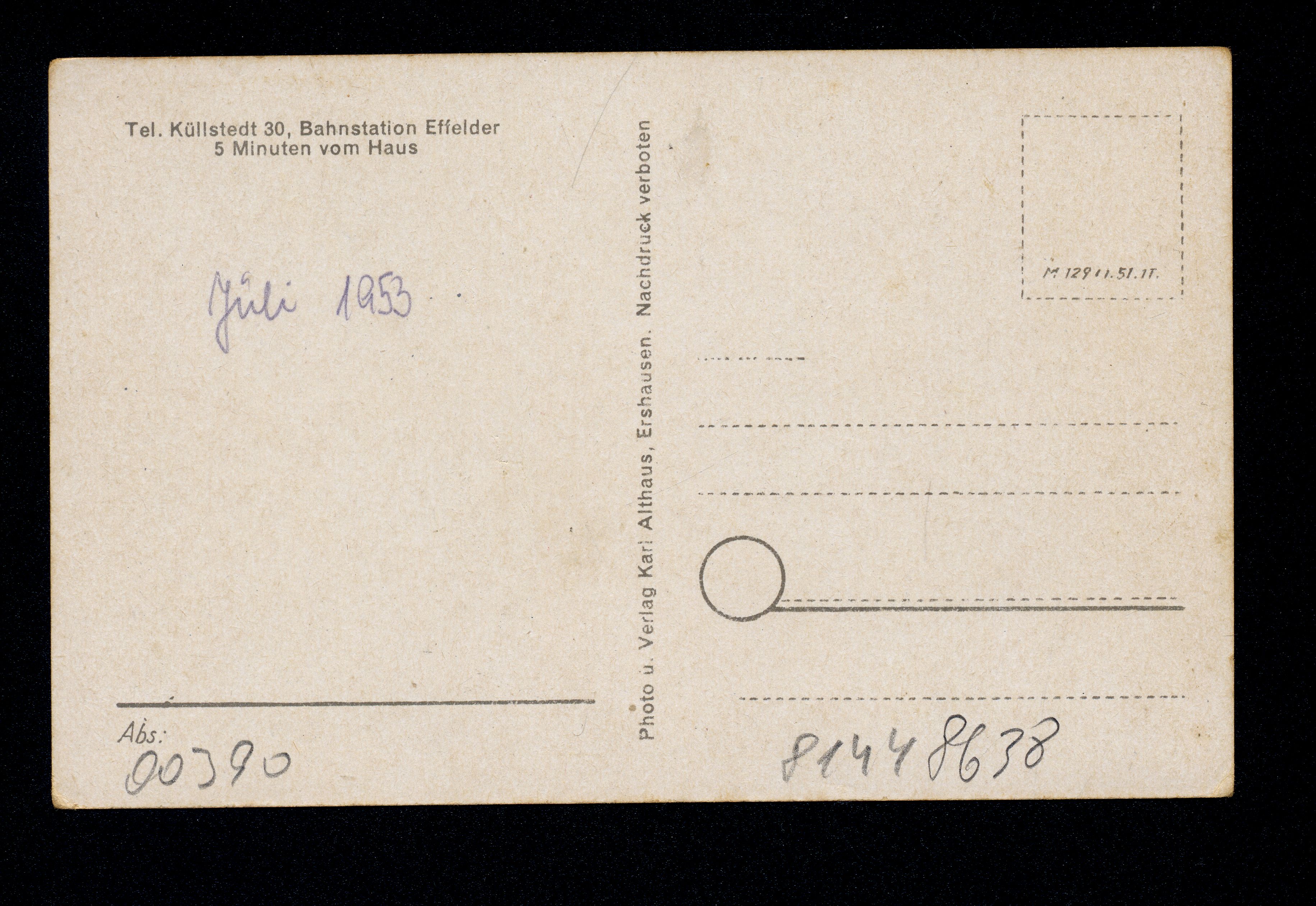 Ort Effelder Motive Gast- u. Pensionshaus ''Klostermühle'' Format klein Jahr 1951 Verlag Karl Althaus, Ershausen Bestell- oder Individualnummer M 129 II.51.1T Tags Gasthaus