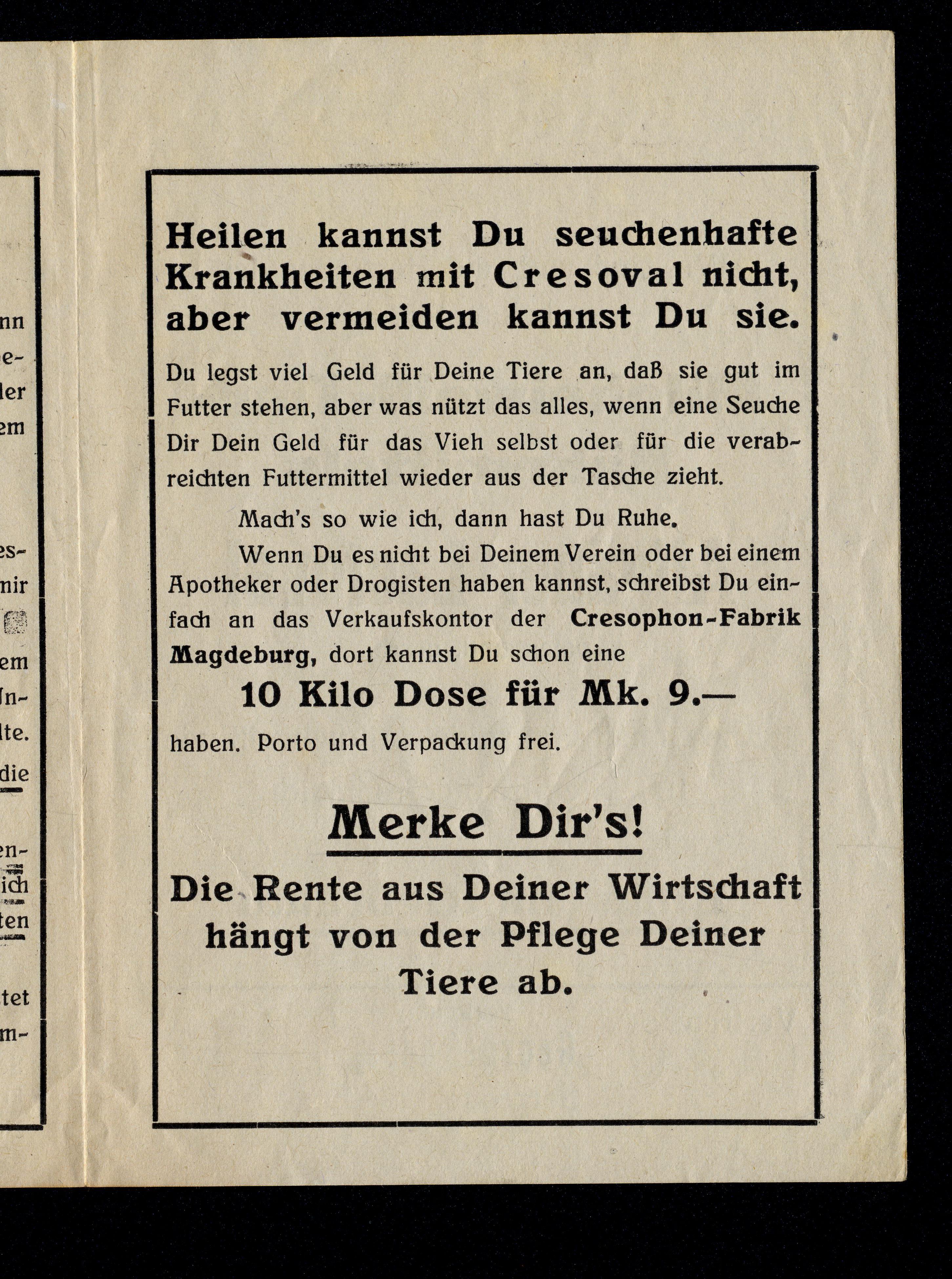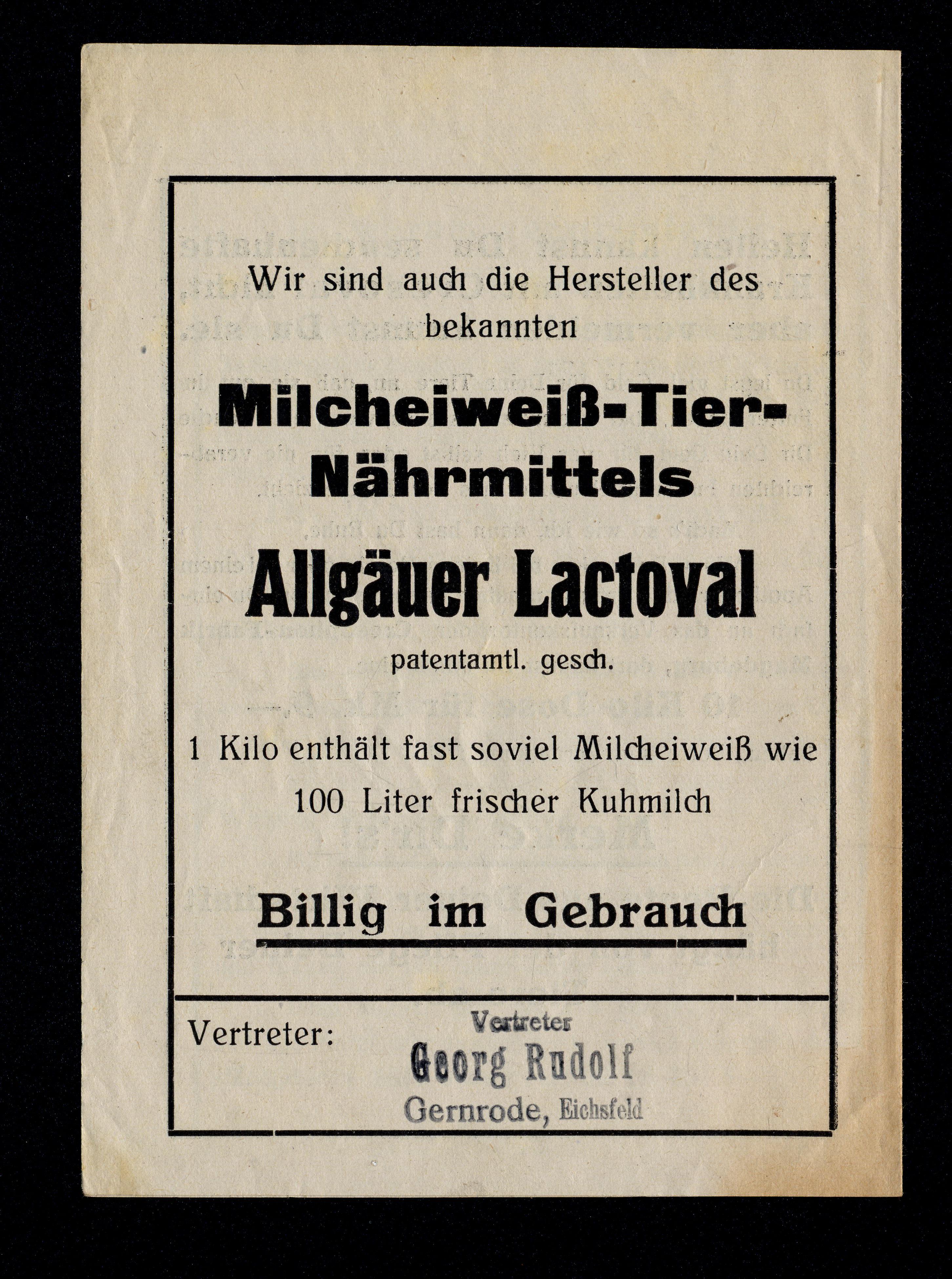 Ort Gernrode - Belege Beschreibung Faltblatt im Postkartenformat Motive Vertreter Georg Rudolf, Gernrode, Eichsfeld Dr. Westerkamps Cresoval Cresophan-Fabrik Magdeburg Allgäuer Lactoval Maul- und Klauenseuche MKS Format Sonderformat Verlag - Bestell- oder Individualnummer -