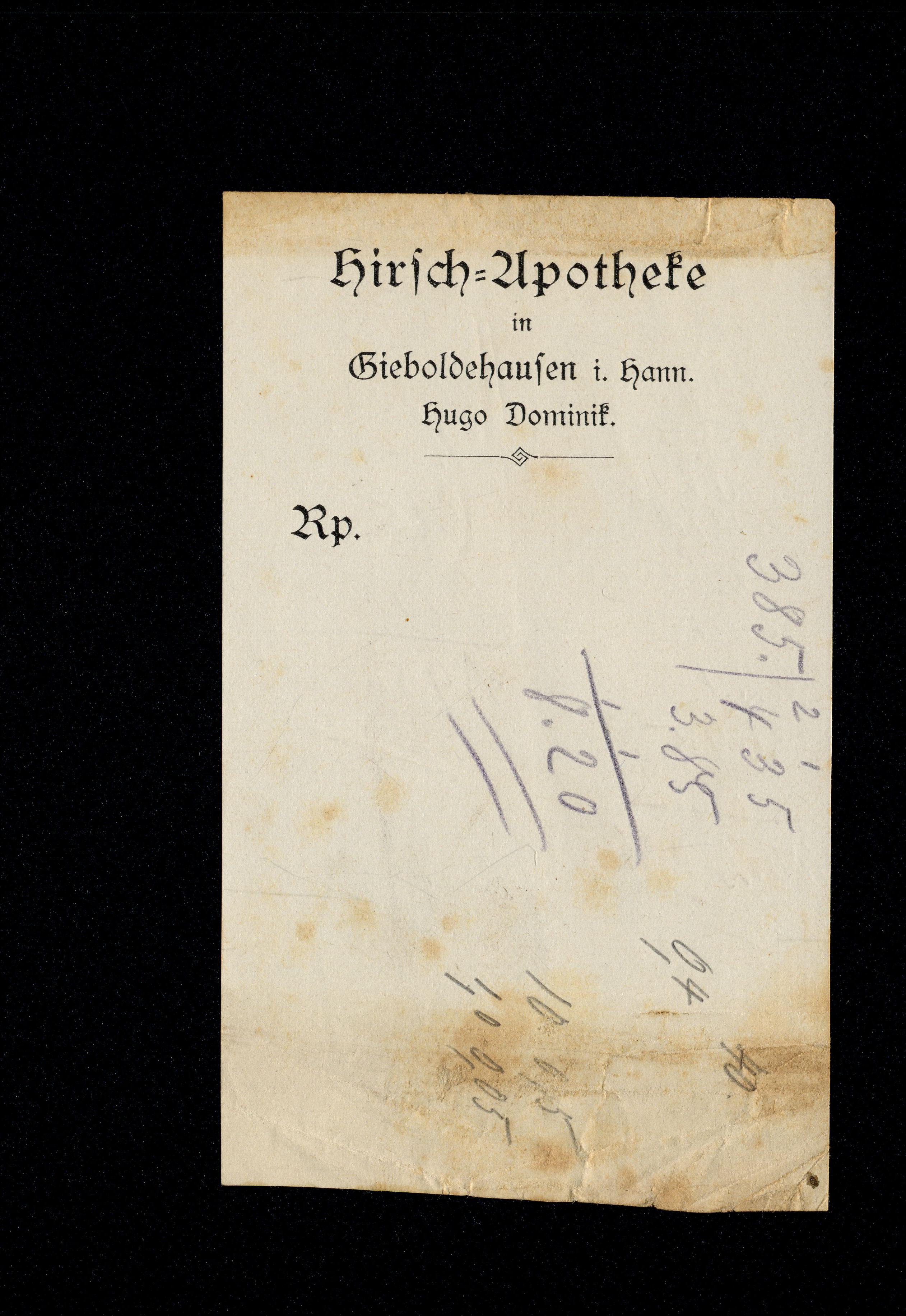 Hirsch=Apotheke in Gieboldehausen i. Hann. Hugo Dominik