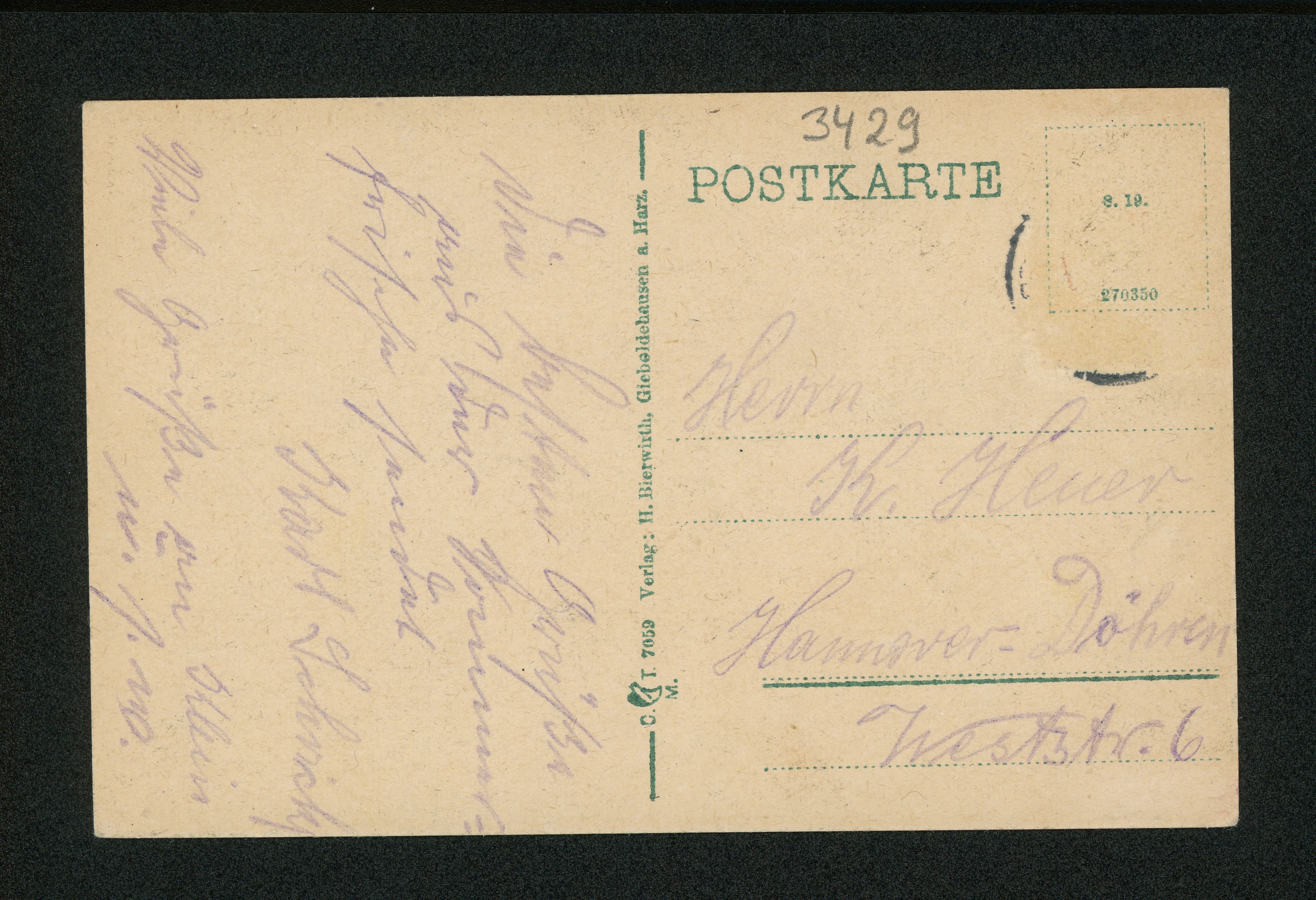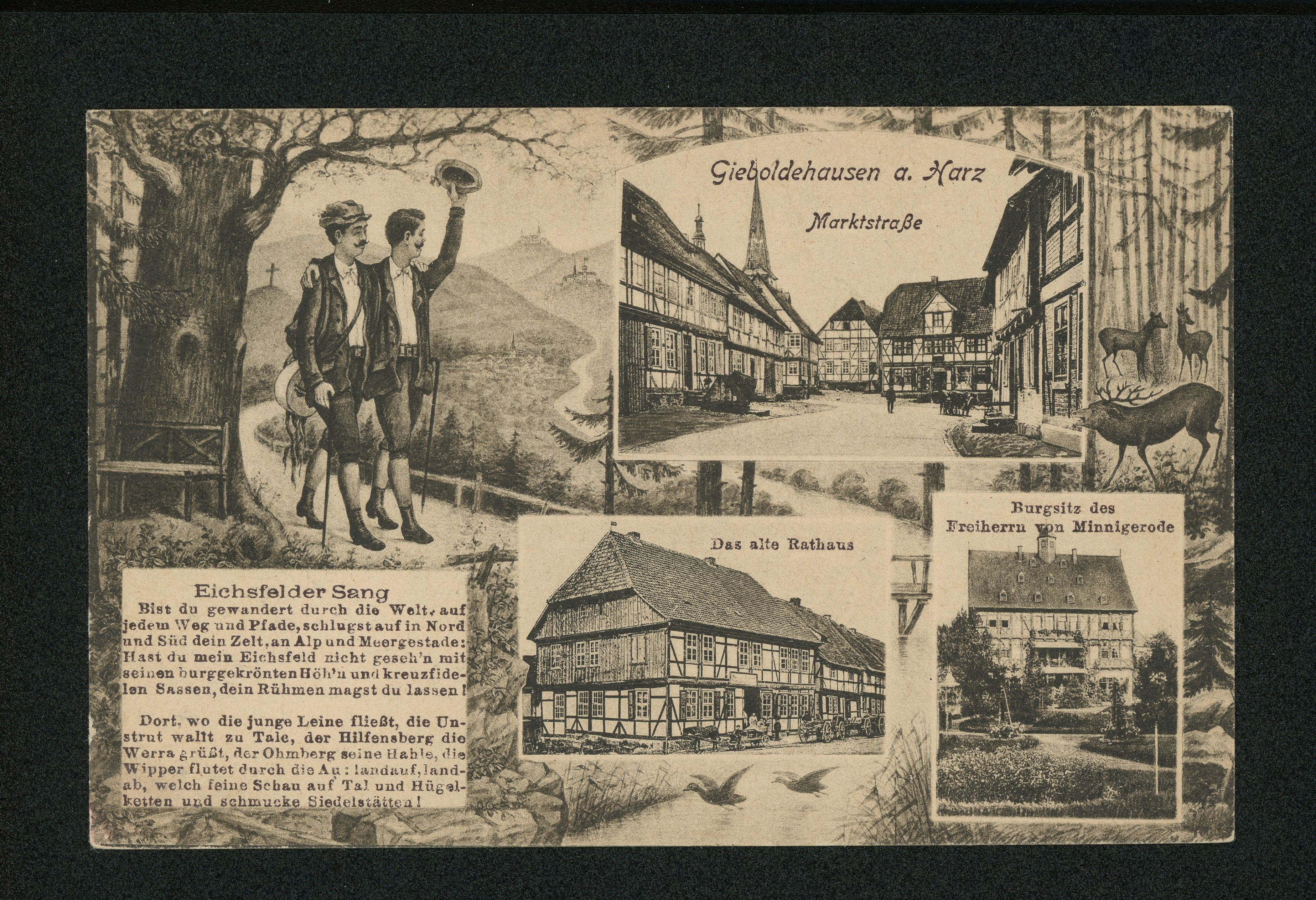 Ort Gieboldehausen Motive Marktstraße Das alte Rathaus Burgsitz des Freiherrn von Minnigerode Format klein Jahr 1919 Verlag Hermann Bierwirth, Gieboldehausen Bestell- oder Individualnummer 7059 8. 19. 270350