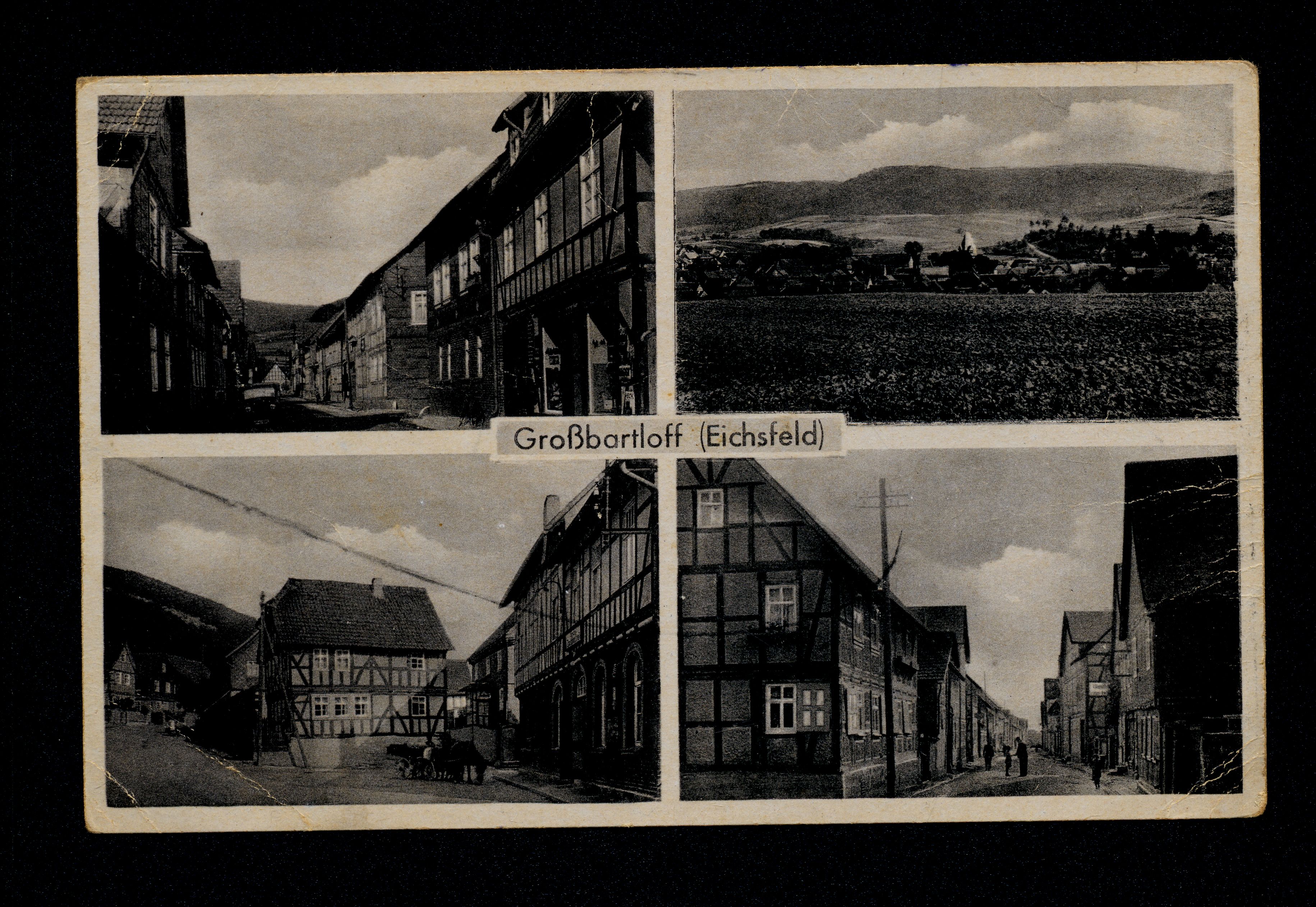 Ort Großbartloff Motive Panorama Hauptstraße mit Gasthof zum Kühlen Grunde Hauptstraße mit Geschäftshaus Heinrich Bode Format klein Verlag Otto & Segieth, Kiel Bestell- oder Individualnummer y 60 Tags Gasthaus