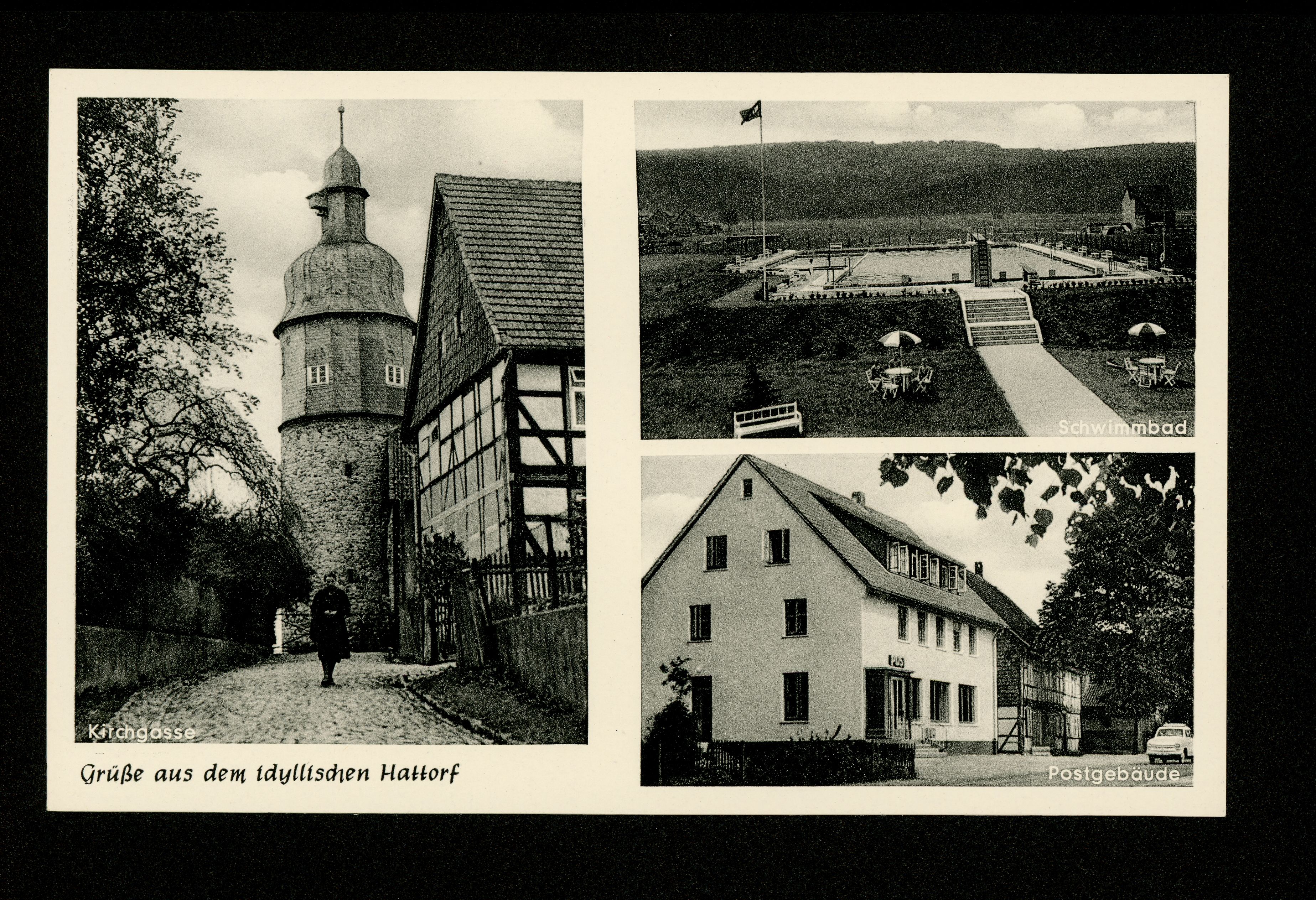 Ort Hattorf Beschreibung oben: original unten: verbessert Motive Kirchgasse Schwimmbad Postgebäude Format klein Verlag - Bestell- oder Individualnummer -