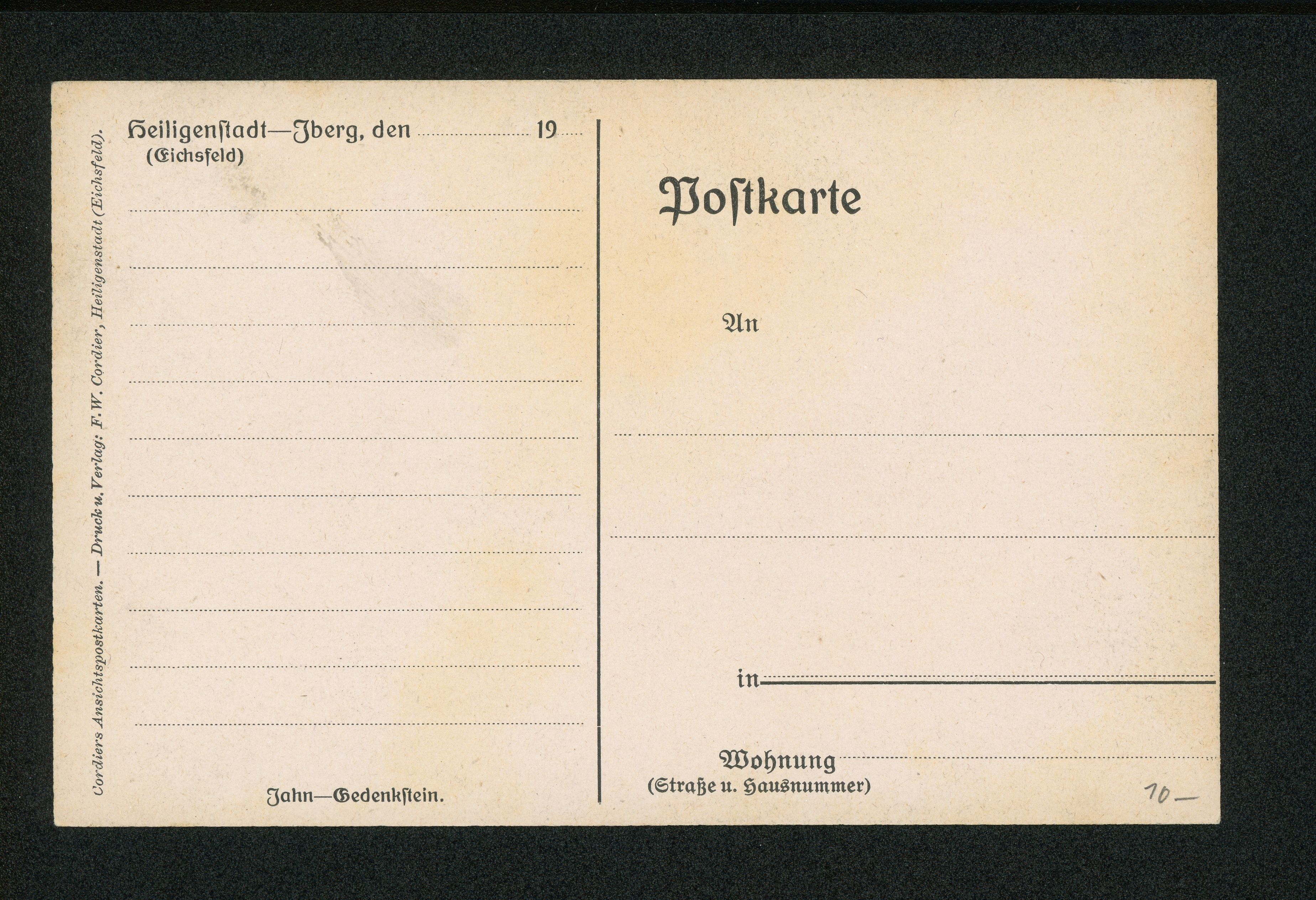 Ort Heiligenstadt Motive Jahn-Gedenkstein Format klein Verlag F. W. Cordier, Heiligenstadt Bestell- oder Individualnummer - Tags Friedrich-Ludwig-Jahn-Denkmal am Philosophenweg