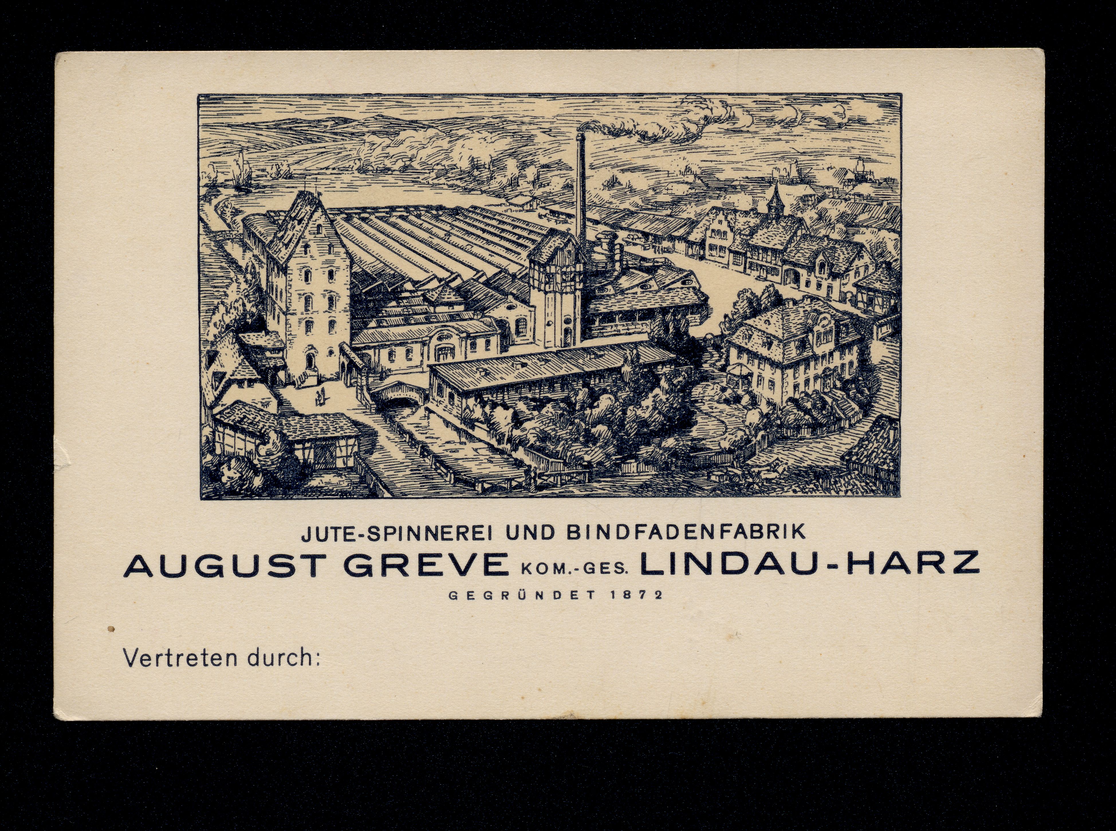 Ort Lindau - Belege Beschreibung Druck im Postkartenformat Motive Jute-Spinnerei und Bindfadenfabrik August Greve Kom.-Ges. Format Sonderformat Verlag - Bestell- oder Individualnummer - Tags Mushaus