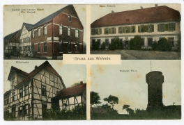Kriegerdenkmal, Gasthof zur Linde, O. Schützenmeister, Kirche und Schule, Wehnder Warte |