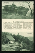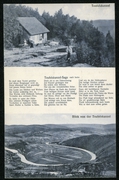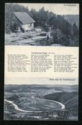 Teufelskanzel beim Hanstein im Werratal, Teufelskanzel-Sage nach Iseke, Blick von der Teufelskanzel, Berghütte und Wirtshaus Teufelskanzel |