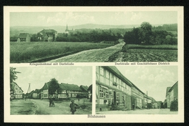 Kriegerdenkmal mit Dorfstraße, Dorfstraße mit Geschäftshaus Dietrich, Teilansicht |