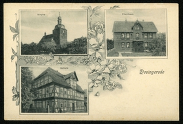 Schule, Gasthaus zum goldenen Stern, Friedrich Becker, Kirche, Pfarrhaus, Pferdehandlung H. Aschoff |