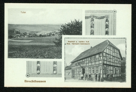 Teilansicht mit Kirche, Gasthof zur Tanne Joh. Koch, Kriegerdenkmal, Große Talsperre |