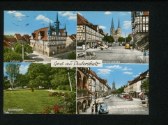 Blick auf Duderstadt, Marktstraße m. Servatiuskirche, Westerturm m. Spiege, Wallanlagen, Marktstraße m. Rathaus, Rathaus, Westerturm, Anreischke |