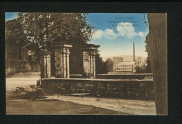 Kriegerdenkmal u. Zuckerfabrik vom Walle aus gesehen |