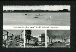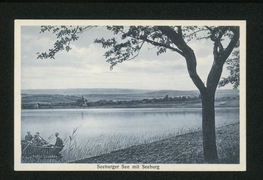 Seeburger See mit Seerestaurant ''Graf Isang'', Bes. H. Rink, Seeburger See mit Seeburg, Restaurant 120 Personen fassend, Café-Garten 500 Personen fassend, Saal 300 Personen fassend |