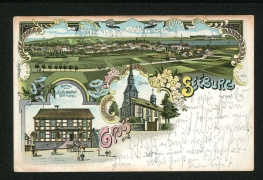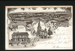 Panorama, Gasthaus zum ''Rathskeller'' [Wilh. Hampe], Kirche |