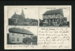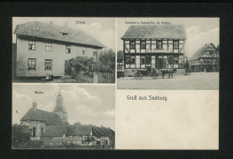 Schule, Gasthof z. Ratskeller, W. Hampe, Kirche |