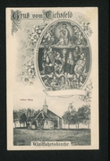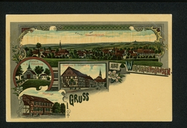 Ev. Kirche, Kath. Kirche, Bahnhof, Gasthaus zum Bahnhof Johannes Kellner, Zentralmolkerei der goldenen Mark |