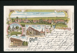 Totalbild, Kirche, Gasthof zu den drei Linden A. Bodmann |