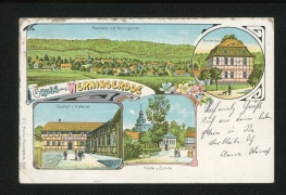 Panorama von Werningerode, Försterhaus, Gasthof v. A. Wenzel, Kirche u. Schule |