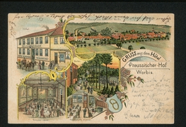 Ansicht vom Luftcurort Worbis, Hôtel, Grosser-Saal, Gesellschafts-Zimmer, Garten |