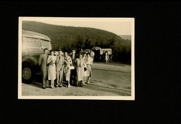 Reisegruppe vor Mercedes Reisebus der Firma Lautenbach |