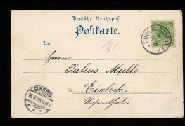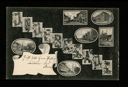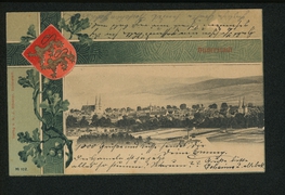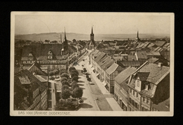Bahnhofstrasse mit evang. Kirche, Obere Marktstrasse mit kath. Kirche, Rathaus, Bahnhofstrasse, Ursulinenkloster, Marktstrasse |