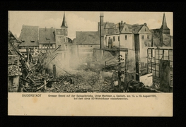 Grosser Brand auf der Spiegelbrücke, Unter Marktstr. und Sackstr. am 12. u. 13. August 1911, bei dem circa 50 Wohnhäuser niederbrannten |