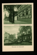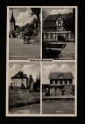 Gasthof und Schlachterei Heinrich Mecke, Dorfstraße mit Kirche u. Kapelle, Schule, Bahnhof |