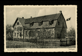 Gesamtansicht, Bernhard-Rust-Landjahrheim, Kriegerdenkmal |