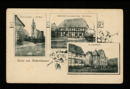 Totalansicht, Kriegerdenkmal, Alte Ellermühle, Geschäftshaus K. Schwiegershausen |