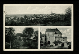 Geschäftsh. Hermann Wieg, Kirche, Schule, Zigarrenfabrik |