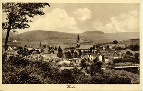 Blick auf das Dorf Lindewerra und Teufelskanzel |