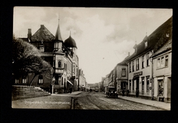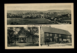 Schule, Kirche u. Kriegerdenkmal, Gasthaus z. Bahnhof, Carl Reimann, Kolonialwarenhdlg. Ignaz Kunkel |