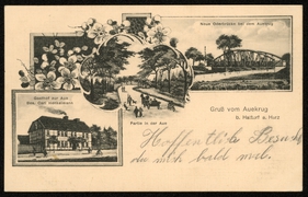 Gasthof zur Aue Bes. Carl Henkelmann, Partie an der Aue, Neue Oderbrücke bei dem Auekrug |