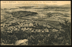 Rundblick nach dem Ohmgebirge und dem Harz, Dorf Vollenborn. Eichsfeld |