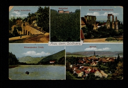 Bad Lauterberg vom Eichenkopf, Kupferhütte b. Lauterberg, Burghof d. Ruine Scharfels, Grosser Knollen |