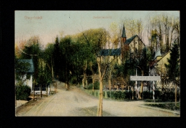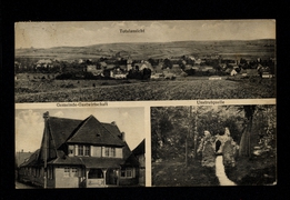 Kriegerdenkmal mit Kirche und Pfarrei, Gemeindegasthaus Herm. Trappe |