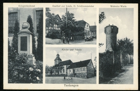 Kriegerdenkmal, Gasthof zur Linde, O. Schützenmeister, Kirche und Schule, Wehnder Warte |