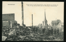 Grosser Brand auf der Spiegelbrücke, Unter Marktstr. und Sackstr. am 12. u. 13. August 1911, bei dem circa 50 Wohnhäuser niederbrannten |