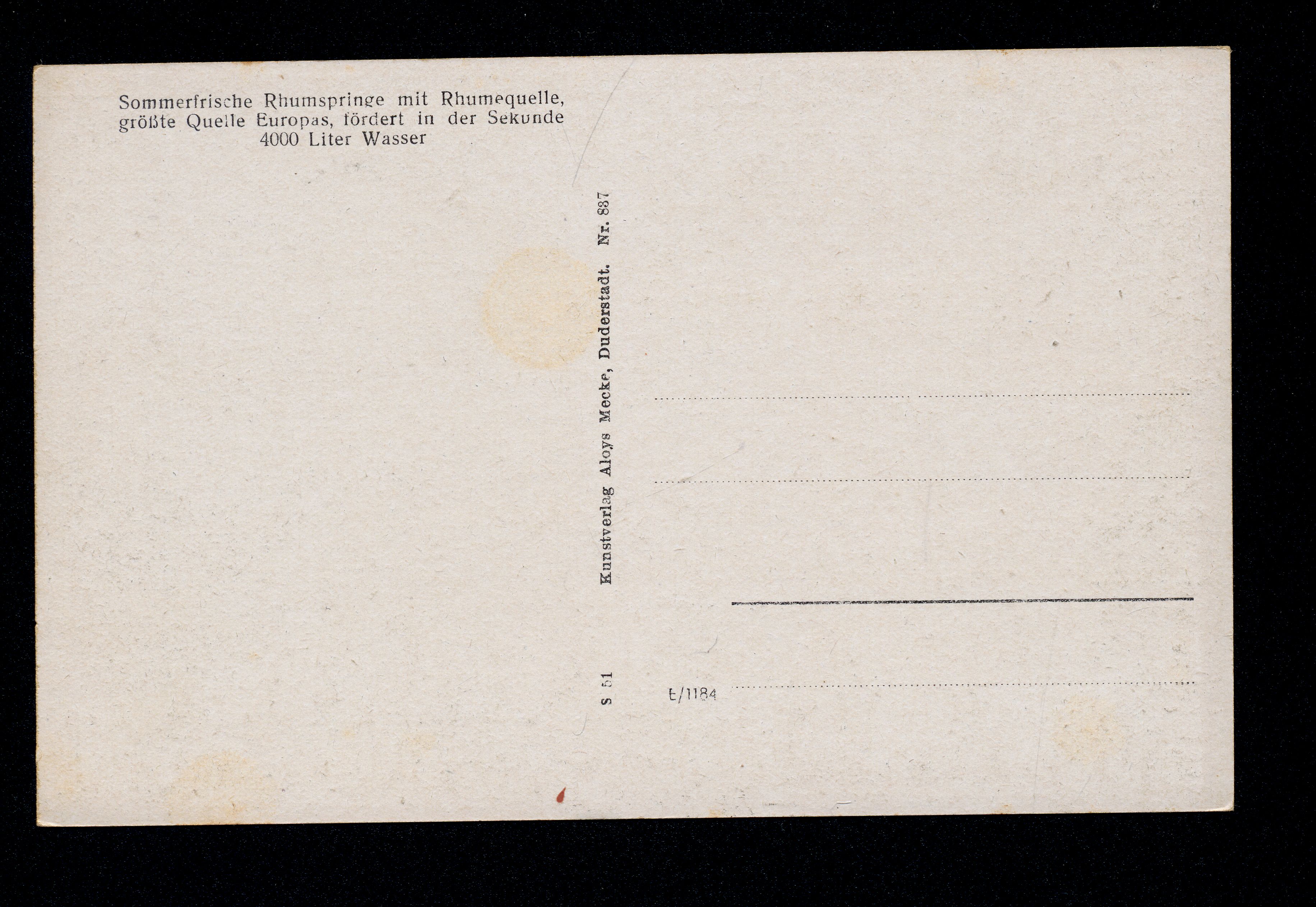 Ort Rhumspringe Motive Rhumspringe mit Harzblick Format klein Verlag Aloys Mecke, Duderstadt Bestell- oder Individualnummer Nr. 837 S 51